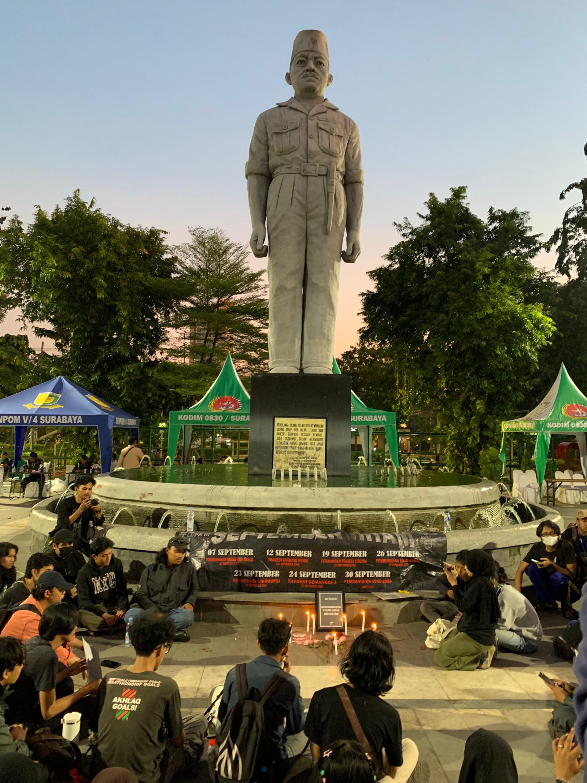 Forma (08/09) – Aksi Kamisan Surabaya menggelar doa bersama di area Taman Apsari Pada Kamis (4/9) lalu. Kegiatan ini dilakukan untuk mengenang korban represi aparat, termasuk sepuluh orang yang gugur pada awal Agustus hingga awal September 2025. Aksi ini digelar dalam rangka memperingati #SeptemberHitam.