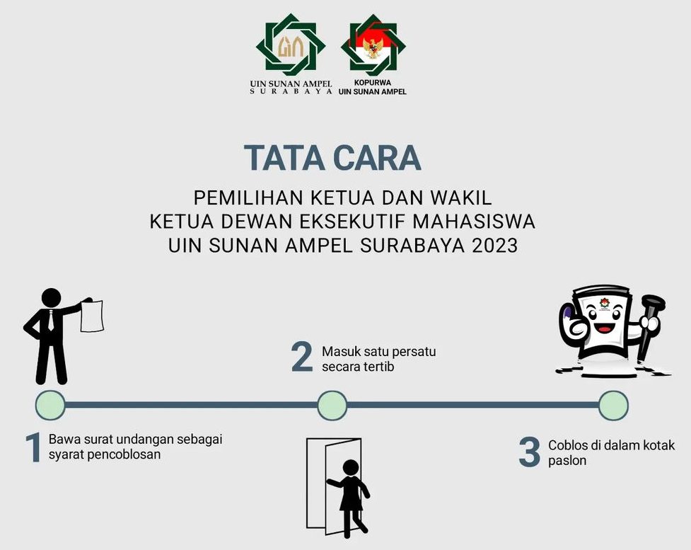 FORMA (17/04) – Pemilihan Dewan Eksekutif Mahasiswa (DEMA) UIN Sunan Ampel Surabaya (UINSA) tahun 2023 telah terselenggara secara luring dan tertutup. Pemilihan ini dilaksanakan oleh Komisi Pemilihan Mahasiswa (Kopurwa) UINSA di kampus (2) Gunung Anyar pada tanggal 11 April 2023. Agenda ini bersifat terbatas dan hanya dihadiri oleh para tamu undangan yang diperkenankan untuk menggunakan hak pilih dalam pencoblosan.